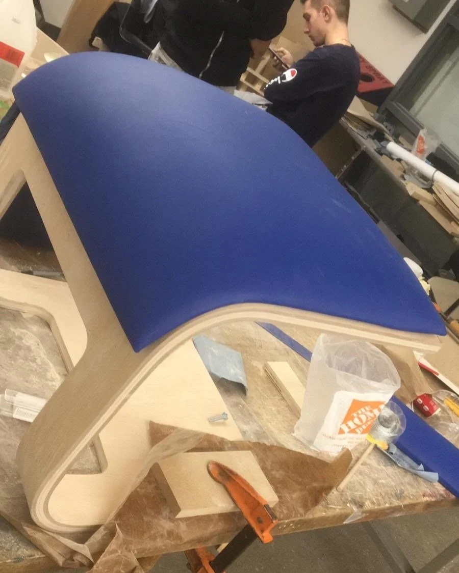 After developing effective sketch models to better represent the full size version of the chair, the team moved on to producing a final prototype.